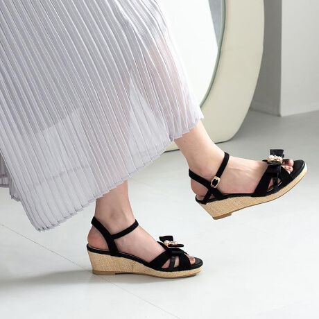 【25春夏新作】<復刻版>2WAYビジューリボンストラップウエッジサンダル