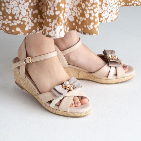 【25春夏新作】<復刻版>2WAYビジューリボンストラップウエッジサンダル
