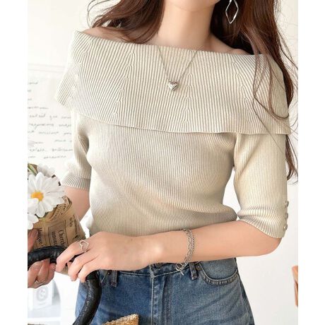 すっきりとしたリブ編みのため、スカートからカジュアルなデニムまで幅広いボトムと相性抜群!