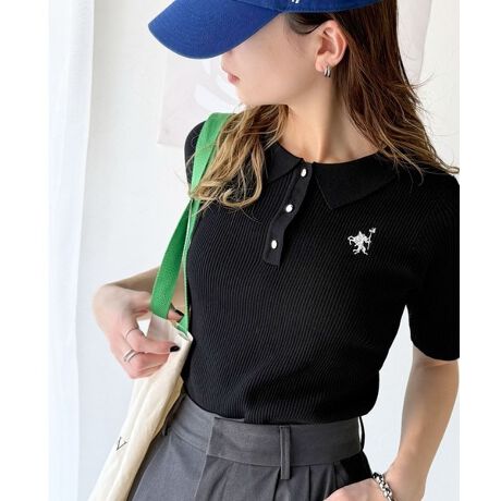 今季トレンドのニットポロシャツ!5分袖のサマーリブニットでシンプルな上品さを演出します♪