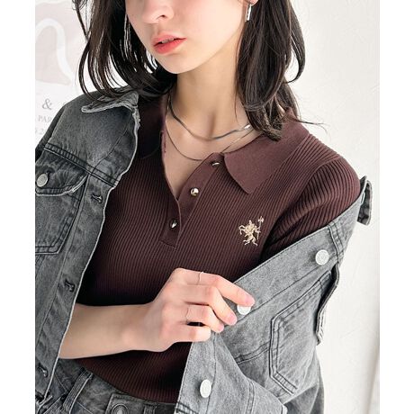 今季トレンドのニットポロシャツ!5分袖のサマーリブニットでシンプルな上品さを演出します♪