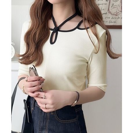 華やかなネック周りが魅力的な、パイピング配色カットソー♪