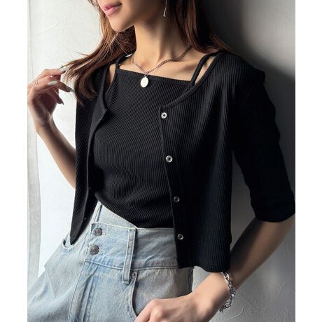 キャミソールと五分袖カーディガンがセットになったアンサンブル。