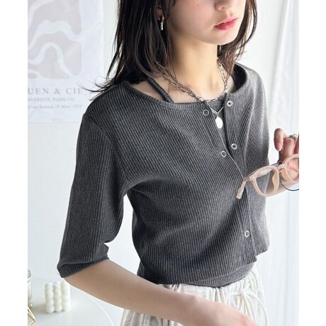 一枚で何通りも楽しめるテレコリブアンサンブル。