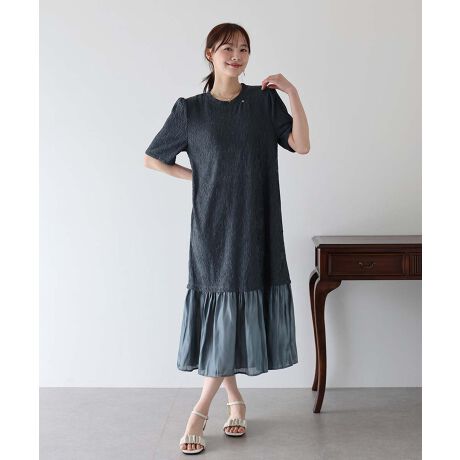異素材切替ティアードワンピース