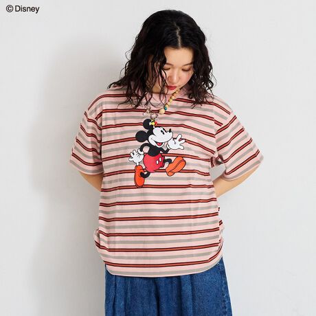 【Disney】ミッキーマウス/マルチボーダーTシャツ/おとな