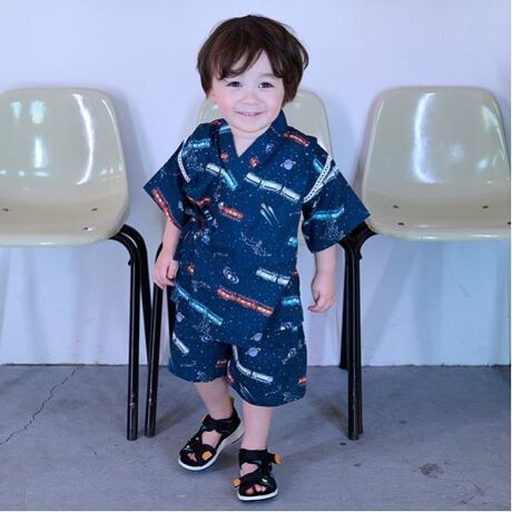 銀河鉄道の総柄デザインがキャッチーで可愛らしい甚平です。