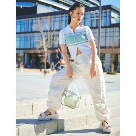 カーゴポケットについた韓国っぽい金属プレートもさりげないポイント。