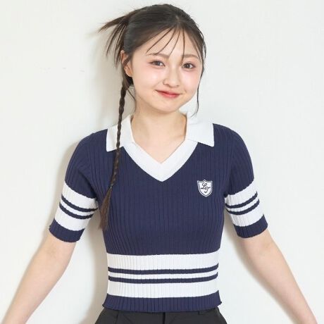 短めの丈感により、これだけで韓国っぽいプレッピースタイルが完成します。