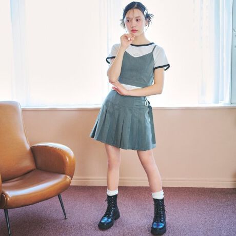 スカートのサイドにはクールな雰囲気を演出するベルトをあしらいました。