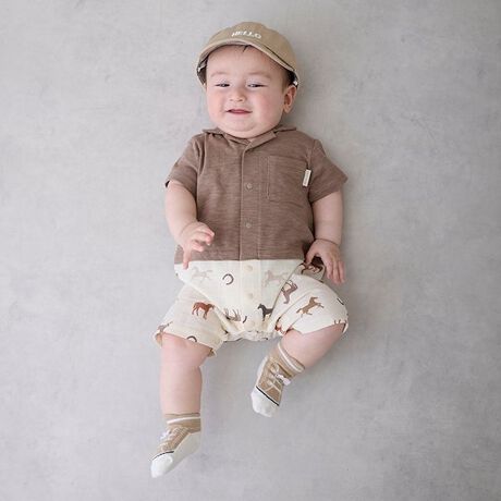 春夏のお出かけも楽しもう!→9552112:柄アソートハーフパンツでお兄ちゃんとお揃いコーデができます。