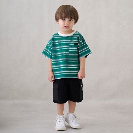 やわらかめの生地感に素材の違うサイドポケットがカジュアルな印象を演出するハーフパンツです。