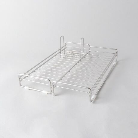 洗い物の量や設置スペースに応じて伸縮させて使用できるコンパクトな水切りかごです。
