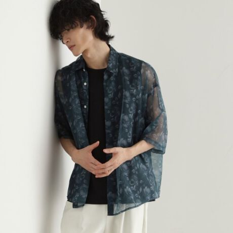 シアー素材にフラワー柄をプリントした軽やかな印象のシャツ。