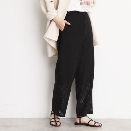 レースパンツは、繊細なレース素材が特徴的で、エレガンスとカジュアルさを兼ね備えた一着です。
