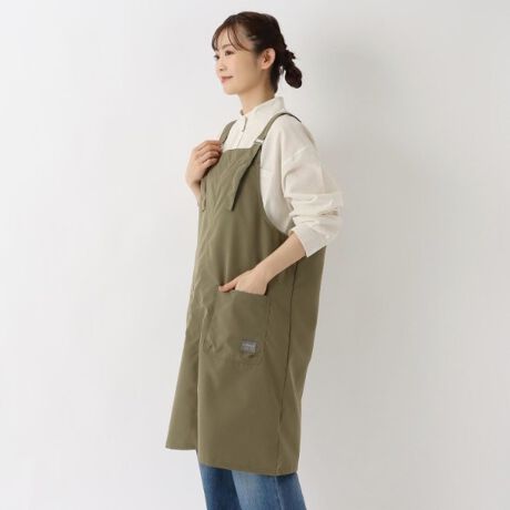 下部にはスリットが入っており、ご使用時にも動きやすい仕様となっており、デザイン的にもオーバーオール風でおしゃれにご使用頂けます。