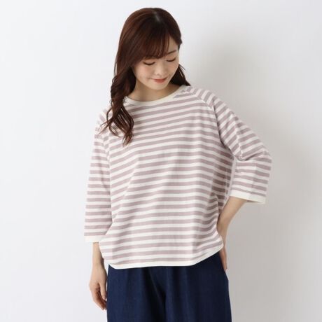ゆったり ラグラン7分袖 ボーダープルオーバー