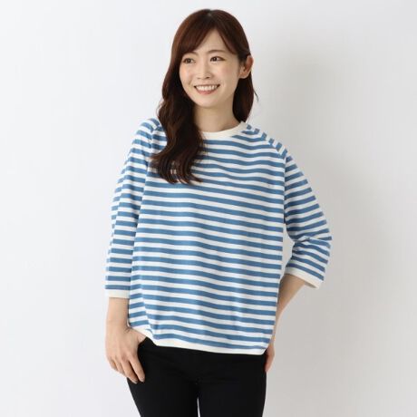 ゆったり ラグラン7分袖 ボーダープルオーバー