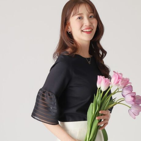 袖口にかけて程よく広げ、女性らしいベルスリーブに仕上げました。