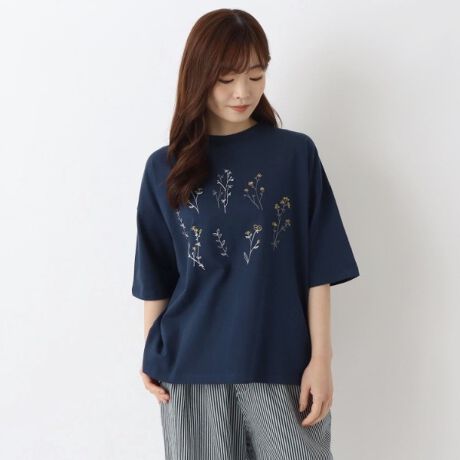 コットン天竺 花柄刺繍入りプルオーバー