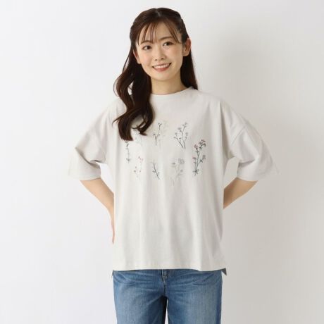 散らばったお花の刺繍がかわいいTシャツ。