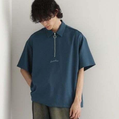 ハーフジップのプルオーバーシャツ。