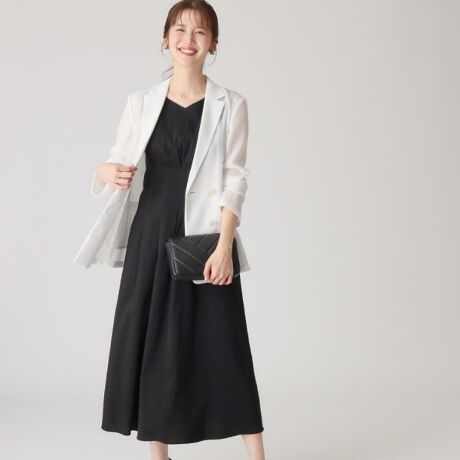 羽織ににシアーなジャケットやブルゾン、カーディガンなど合わせやすいワンピースです。夏本番は着映えするので1枚がオススメです。