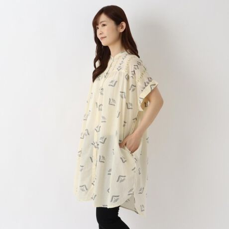 コットン60キャンブリック生地を使用したタンポポ柄の短めワンピース。