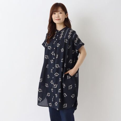 コットン60キャンブリック生地を使用したタンポポ柄の短めワンピース。