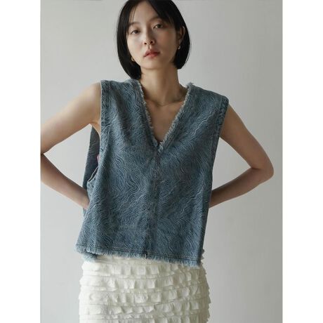 ニュアンス豊かなデニム×カットオフフリンジがアクセントのプルオーバータイプのベスト。