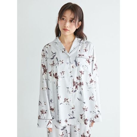 フラワーマーケットでお花を選ぶようにチョイスしていただける、全5種類の花柄シリーズです。ほのかな光沢感となめらかさが魅力のサテンシャツに、アンニュイなカラーリングの花を総柄プリント。品のある配色パイピングと胸ポケットのロゴ刺繍、大人っぽいざっくりとしたシルエットがおしゃれです。お揃いの柄のサテンパイピングロングパンツを合わせてギフトにするのもおすすめです。
