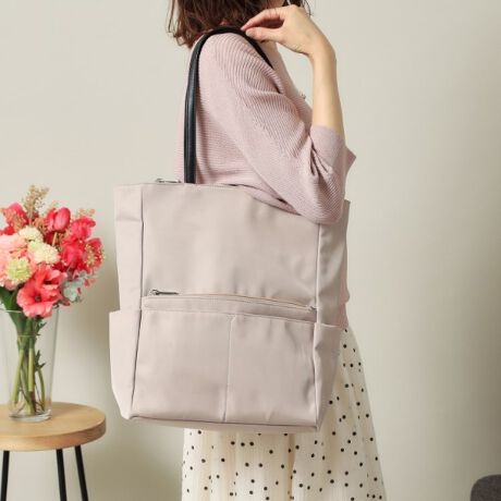 ハンドル部分のみ合皮を使用しているのでキレイめスタイルにも馴染みやすいシンプルデザイン。