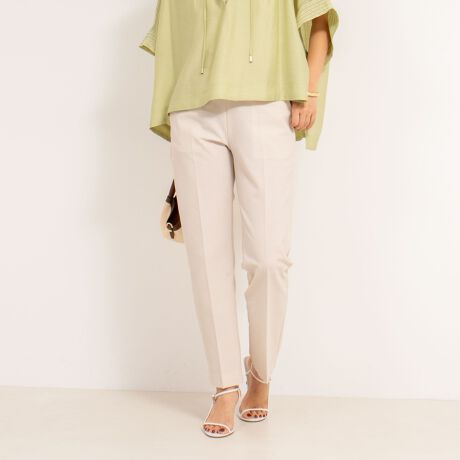 ・夏らしく涼し気なサッカー素材のテーパードパンツ