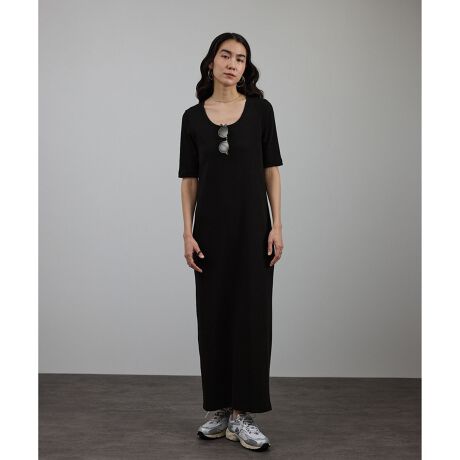 大人が嬉しい袖丈レングスのリブTシャツワンピースです。