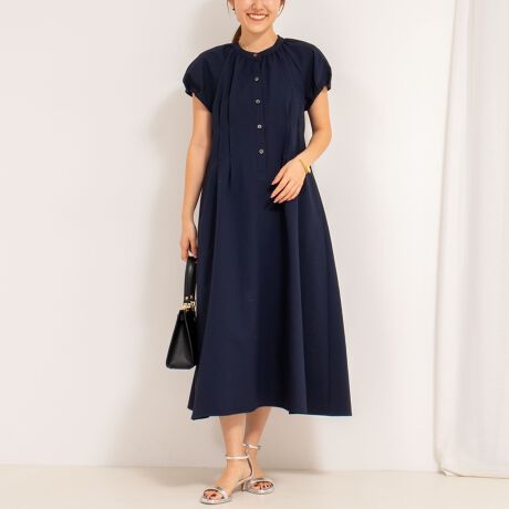 ・夏らしく涼し気なサッカー素材のフレンチスリーブワンピース