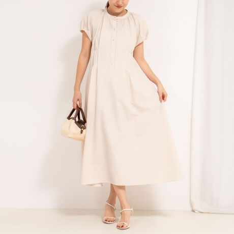 ・夏らしく涼し気なサッカー素材のフレンチスリーブワンピース