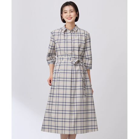【洗える】コンパクトチェック シャツカラー ワンピース