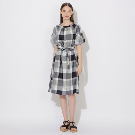 ◆クレストブリッジチェックが華やかなパフスリーブドレス