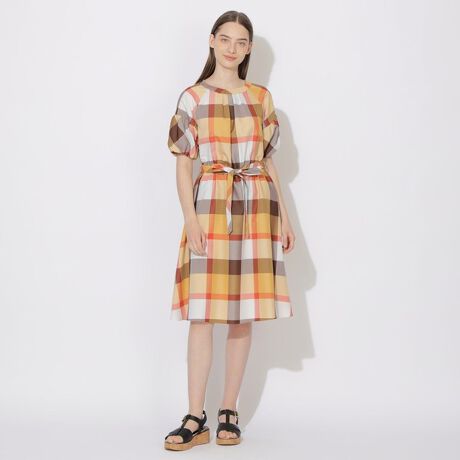 ◆クレストブリッジチェックが華やかなパフスリーブドレス