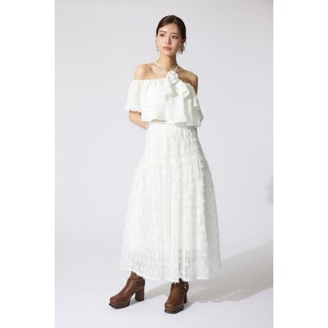 【シアーフェザーのジャガードフレアスカートでロマンティックムードに】■ポイントトレンドライクなシアーフェザーのフリンジをたっぷりと使ってデザインされた生地でフィット感のあるウエストから大胆に広がるフレアシルエットが美しいロングスカート。フェザー感のあるフリンジは今年らしくお洒落な印象で、コーデをドラマティックに演出します。シンプルなトップスに合わせるだけで、大人上品な印象をアシストしてくれるアイテムです。■ディテールフィット感のあるウエストから大胆に広がるフレアシルエット。ギャザーデザインを入れることで、立ち止まっているときでも動きが出るようにしました。■スタイリングシンプルなトップス合わせがおすすめです。足元は、ブーツからスニーカーまで幅広いスタイリングが楽しめます。■生地透け感:ややあり裏地:あり伸縮性:なし光沢感:なし厚さ:薄手■商品のお気に入り登録お気に入りアイテムの再入荷・在庫1点などの通知を受け取ることができます。[注意事項]※画像の商品はサンプルです。実際の商品と仕様、加工が若干異なる場合があります。※画像の商品は光の照射や角度、お使いのモニター環境により、実物と色味が異なる場合がございます。※着用、お取り扱いの際は、アテンションタグをご確認ください。