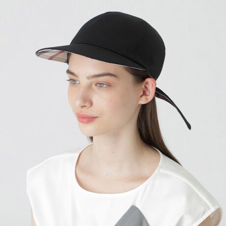 長めに設定したツバが、日よけ対策にも活躍します。ツバ裏はクレストブリッジチェックになっています。