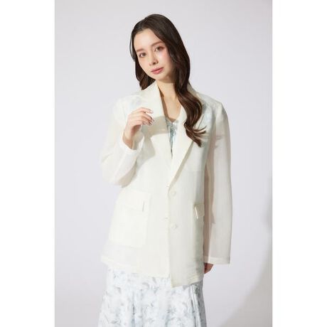 【シアーの表面感のある生地がポイントのテーラードライトジャケット】■ポイント程良い透け感に凹凸感のある特殊な生地を使用したライトなテーラードジャケット。肌が透けたり、インナーの柄が内側から滲み出るような演出にこだわった生地がポイントです。■ディテールこの透け感を利用し、本物のポケットを施し内袋の仕様を外に透けさせているデザインがポイントです。シアーな生地でも、仕様を重ねて奥行きを出しているデザインがこだわりです。■スタイリング袖のないワンピースやトップスに合わせて、透け感をナチュラルに楽しむ大人コーデがおすすめ。あえて柄や差し色のアイテムをインナーにすると今っぽく着用いただけます。またデイリー使いはもちろん、オケージョンの羽織りとしてもおすすめです。■生地透け感:あり裏地:なし伸縮性:なし光沢感:なし厚さ:なし■商品のお気に入り登録お気に入りアイテムの再入荷・在庫1点などの通知を受け取ることができます。[注意事項]※画像の商品はサンプルです。実際の商品と仕様、加工が若干異なる場合があります。※画像の商品は光の照射や角度、お使いのモニター環境により、実物と色味が異なる場合がございます。※着用、お取り扱いの際は、アテンションタグをご確認ください。