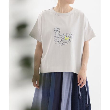 「よれない」「透けない」「長持ちする」良質なUSコットンで仕立てたロゴプリントTシャツ。前身には小さなスワンを並べて、大きなスワンにしたプリント。後ろにはロゴプリントが入っています。程よくゆとりがあり、小さな袖のコントラストがかわいいシルエットです。