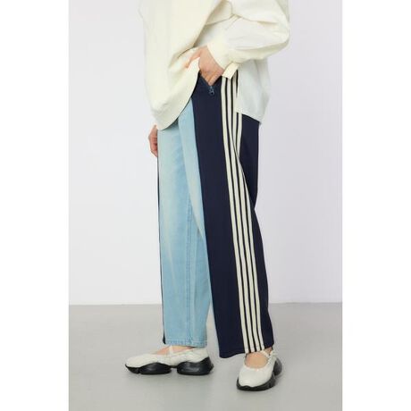 ■ポイント前回大好評だったアイテムが、新色とダメージ加工なしで再登場。ジャージ×デニムの異素材バイカラーワイドパンツ。トラックパンツとデニムをリメイクした様なデザインがポイント。程よくワイドなシルエットで、ジャージ部分はウエストゴムなので、ストレスフリーで着用できるアイテムです。■ディティールデニム部分はパーツでUSED加工をし、脇のジャージ素材とドッキングしたリメイクテイスト仕上げ。RODEO CROWNSオリジナルのタックボタンを使用し、バックポケットににピスネームを付けています。■スタイリング主役級のアイテムなので、シンプルなトップスやグラフィックアイテムとの合わせがおすすめ。■生地デニムは綿100%の10ozインディゴデニム使用。デニム部分はノンストレッチですが、別布は伸縮性有です。※加工感には多少の個体差がある場合があります。また、経年劣化による色落ちの可能性がありますが、工程上の特性ですのでご了承ください。透け感:なし(柄WHTは一部やや透ける場合あり)光沢感:なし伸縮性:一部あり裏地:なし[注意事項]※画像の商品はサンプルです。実際の商品と仕様、加工が若干異なる場合があります。※画像の商品は光の照射や角度、お使いのモニター環境により、実物と色味が異なる場合がございます。※着用、お取り扱いの際は、アテンションタグをご確認ください。