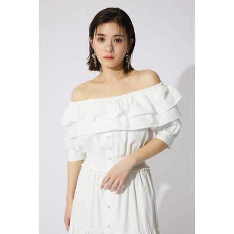 【ダブルフリルがフェミニンな雰囲気を醸し出すブラウストップス】■ポイントオフショルダーでも、Uネックでも着用できる2WAYブラウス。3種類の生地をカラー展開によって変えているので、幅広い系統で着用いただけるようにしました。WHTはコットン系の生地で張りが出て、どんなコーデにもマッチします。柄BLKはチェック柄でカジュアルなイメージで着ていただけます。柄PURはストライプの柄が入った透け感のシフォン生地に花柄をプリントしているので柔らかい印象を与えます。■ディテールフロントに施された釦が縦ラインを出しシャープに魅せてくれます。またウエストシャーリングで楽に着脱ができ、着用中もリラックスできるのも嬉しいポイントです。■スタイリング同じ生地で作成した【110IS931-0991・センターボタンデザインティアードフレアSK】とセットアップのスタイリングがおすすめです。■生地透け感:WHT、柄BLK→なし、柄PUR→あり裏地:あり伸縮性:シャーリングの部分のみ光沢感:なし厚さ:なし■商品のお気に入り登録お気に入りアイテムの再入荷・在庫1点などの通知を受け取ることができます。[注意事項]※画像の商品はサンプルです。実際の商品と仕様、加工が若干異なる場合があります。※画像の商品は光の照射や角度、お使いのモニター環境により、実物と色味が異なる場合がございます。※着用、お取り扱いの際は、アテンションタグをご確認ください。