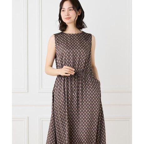オリジナルのプロヴァンス風プリントが施されており、程良いギャザー分量とウエストのドロストがポイントです。身体のラインを拾わないシルエットで、体型をカバーし、大人の女性が安心して着られるデザインに仕上げました。存在感のあるプロヴァンス風プリントが、スタイリングのアクセントとなる一着です。・水洗い可■素材■この素材は、プロヴァンスプリントのようなナチュラルで優しいモチーフを使用しています。ダークなボディカラーがコントラストを引き立たせ、モードな印象に仕上げました。さらに、ダークカラーはスタイリングしやすく、すっきりとした印象を与えます。プリント生地にはちりめんサテンを使用しており、落ち感があり滑りの良い着心地を実現しています。表面の繊細な凹凸がナチュラルな雰囲気と表情をプラスしている点も魅力です。また、シワになりにくいイージーケア性も嬉しいポイントです。