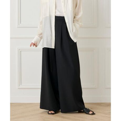 ■デザイン2タックデザインで自然に広がるワイドシルエットながらも分量感がありつつ、ヒップ周りをコンパクトにすることで女性らしいメリハリのあるバランスに。ニットやブラウスをタックインして付属のベルトでウエストをキュッと絞ってお腹回りをカバー。通勤からデイリーシーンまで幅広く活躍してくれる万能なベーシックなアイテム。■素材特殊な構造の糸を使用しているストレッチ素材。タテヨコどちらにも伸縮性のある2WAYストレッチなので快適な穿き心地です。サラッとしたタッチで着用時期を選ばず、ストレスフリーに穿いていただけます。きちんと感もありながらデイリーユースにも使いやすく、シワになりにくいのも嬉しいポイント◎。・水洗い可・ポケットあり・裏地あり・共地ベルト付き
