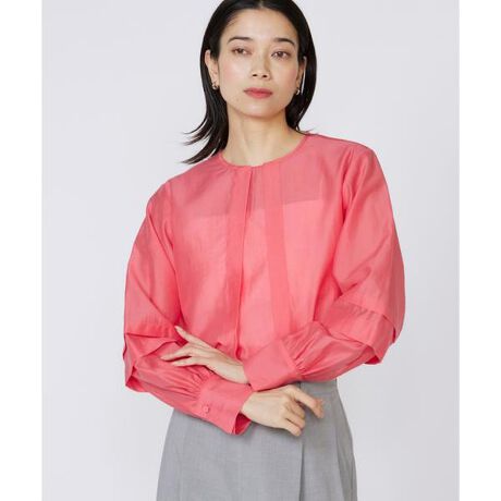 シルクのように上品な光沢感のある軽やかな素材のタックブラウス。襟元のと袖にタックを施し、自然な立体感が引き立つシルエットです。ウエストイン・アウトを選ばずバランスが整う1着。しなやかさの中に適度なハリ感があるため、美しいシルエットを保ちながら、ジャケットやブルゾンのインナーとしてもコーディネートが楽しめます。・バックボタンあり・水洗い可■サンプル撮影商品■こちらの商品はサンプルでの撮影となっております。実際の商品とは、サイズや色味、素材、デザイン等の仕様が若干変更になる場合がございます。
