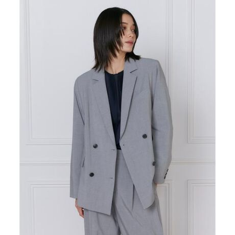 ヒップにかかる長めの着丈でマニッシュな印象のダブルブレストジャケット。きちんと感がありつつほど良くゆとりのあるシルエットなので、カーディガン感覚でさらりと着用いただけます。同素材のパンツとのセットアップスタイルも新鮮な印象に。通勤からデイリーまでさまざまなシーンで活躍してくれるアイテムです。TRストレッチ素材は耐久性に高く、シワになりにくいところが特徴です。 軽量さとストレッチ性を持たせているので、馴染みがよく快適な着心地です。・裏地あり(背抜き)・ポケットあり・水洗い可同素材のジレ品番:7151141815セットアップで着られるパンツ品番:7151161814■サンプル撮影商品■こちらの商品はサンプルでの撮影となっております。実際の商品とは、サイズや色味、素材、デザイン等の仕様が若干変更になる場合がございます。