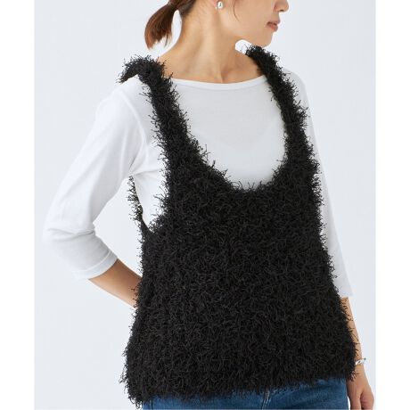 毛足の長いシャギーヤーンを使用したニットジレ。